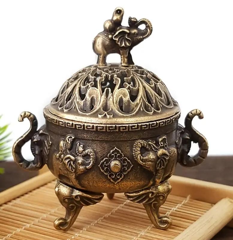 Слоновий треножник для Благовоний - классический Стиль, Треножник для Благовоний подходящий для Буддийского поклонения, домашнего чайного уголка, декорации рабочего стола - Уникальная Идея Подарка Материал: сплав цинка Размеры на фото
