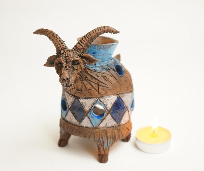 Авторская, керамическая аромалампа для эфирных масел в виде Сахара. 12x10см.