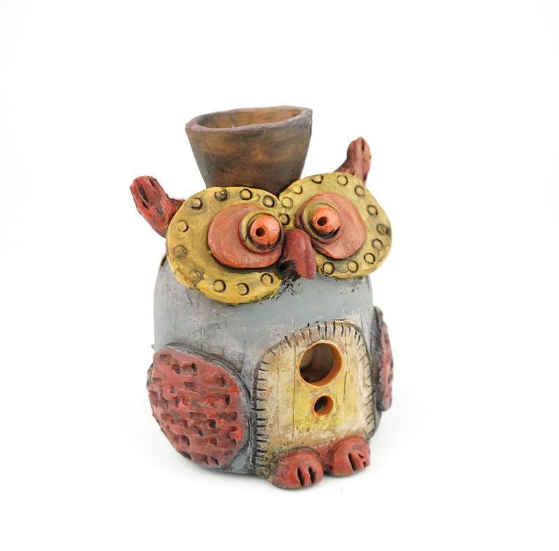 Авторская, керамическая аромалампа для эфирных масел в виде совы. Такая оригинальная аромалампа, станет полезным подарком для здоровья родных и близких людей. 11.5x9см. Товар под заказ