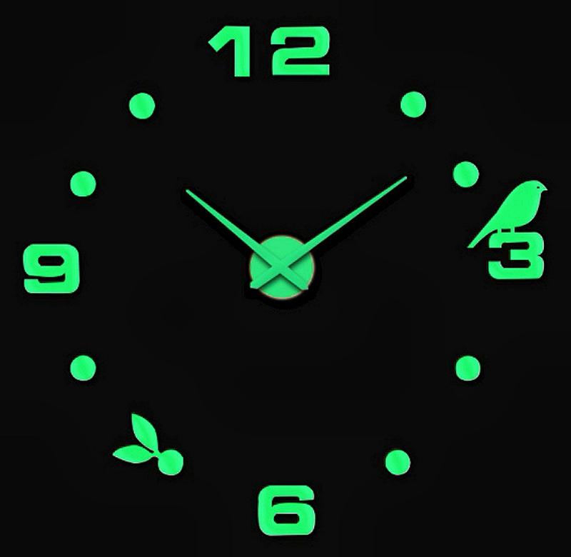 Настенные объемные 3d часы большие 120см светящиеся в темноте с цифрами точками и птичкой...
