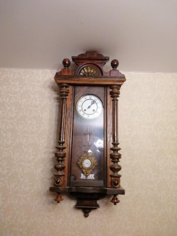 Німецький годинник з боєм відомої фірми Georg Schneider, Breslau, кінець XIX ст,., на ходу, але потрібно налаштувати, корпус оригінальний, але відреставрований, механізм і маятник оригінал. Пересилаю.