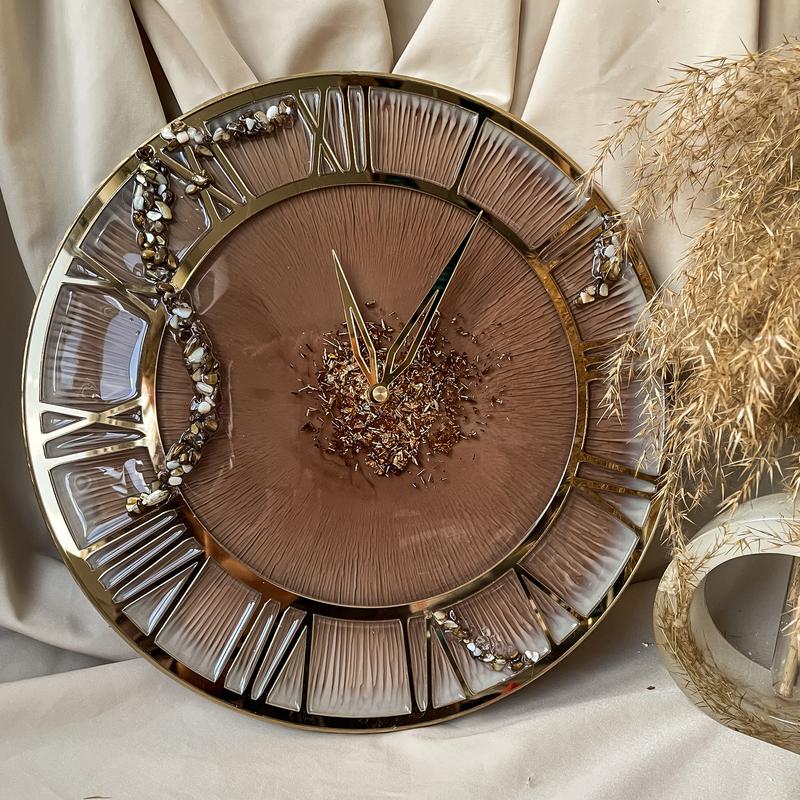 Настенные часы из серии EPOXY - это воплощение красоты эпоксидной смолы в сочетании с практичностью, в которую вложена частичка души мастера и его талант. Именно эти часы придадут особого шарма вашему дому. Каждое изделие делается вручную и все узоры уникальны. Поэтому вы можете быть уверены, что ваших часов не будет больше ни у кого. Под ваш интерьер мы с радостью подберем удачную цветовую гамму и нужный размер. Срок изготовления - от 1 до 10 дней. Дайте волю фантазии, и мы воплотим все ваши мечты в жизнь. - Можно заказать во всех цветах и добавить гравировку - Размеры - от 23 до 100 см в диаметре - Цифры римские/арабские - Можно добавить натуральные, полудрагоценные и искусственные камни - Золотые или серебряные зеркальные стрелки и деления (на выбор) - Высокоточный бесшумный механизм с плавным ходом - Есть петля на механизме для подвешивания Интересно, как будут создаваться ваши часы? Смотрите обзор: