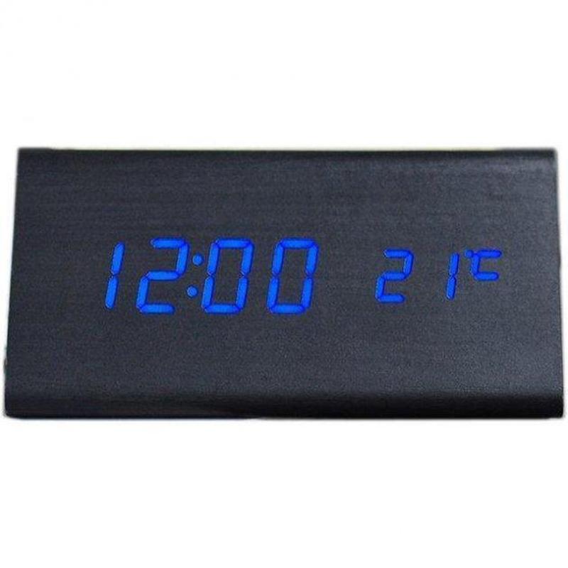 Настольные часы с будильником от сети с синей подсветкой/датчиком темп/дата (черного цвета...