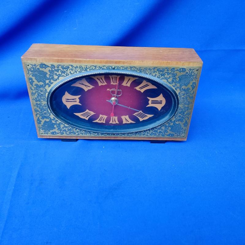 Светские настольные часы ссср в деревянном корпусе электронные янтарь латунной накладкой с...