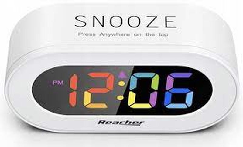Большие цветные светодиодные цифры, которые легко читаются днем и ночью. Экономия места (5,6" x 2,9" x 1,9") Питание от сети переменного тока. Получите личный комфорт с диммером от 0 до 100%; и наслаждайтесь свежим утром с регулируемой громкостью будильника от 30 до 85 дБ. Простой в использовании цифровой будильник. Для работы с ним даже не нужна инструкция. Легкий повтор простым нажатием из любой точки сверху. Розетка питания: подключите часы к адаптеру питания постоянного тока. Время памяти и настройки будильника с 2 батареями AAA (не входят в комплект). Нет необходимости сбрасывать время при восстановлении основного питания.