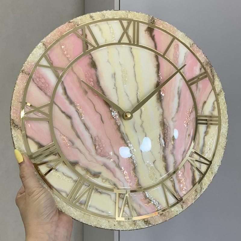 Настенные часы из серии EPOXY - это воплощение красоты эпоксидной смолы в сочетании с практичностью, в которую вложена частичка души мастера и его талант. Именно эти часы придадут особого шарма вашему дому. Диаметр часов на фото - 35 см. Каждое изделие делается вручную и все узоры уникальны. Поэтому вы можете быть уверены, что ваших часов не будет больше ни у кого. Под ваш интерьер мы с радостью подберем удачную цветовую гамму и нужный размер. Срок изготовления - до 7 дней. Дайте волю фантазии, и мы воплотим все ваши мечты в жизнь. - Можно заказать во всех цветах и добавить гравировку - Размеры - от 23 до 100 см в диаметре - Цифры римские/арабские - Можно добавить натуральные, полудрагоценные и искусственные камни - Золотые или серебряные зеркальные стрелки и деления (на выбор) - Высокоточный бесшумный механизм с плавным ходом - Есть петля на механизме для подвешивания Интересно, как будут создаваться ваши часы? Смотрите обзор: