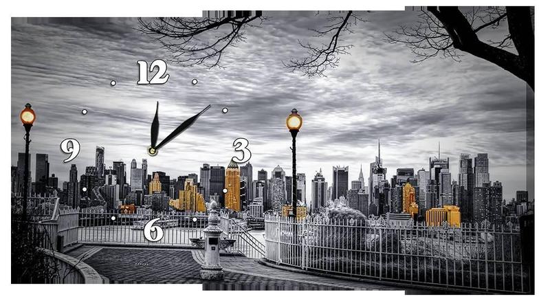 Настінний годинник на полотні декор карпати нью-йорк 05 сірий (bcig64938)
