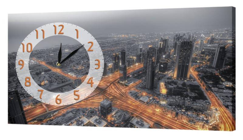 Настінний годинник profart на полотні 30 x 53 см нічне місто (07_s)