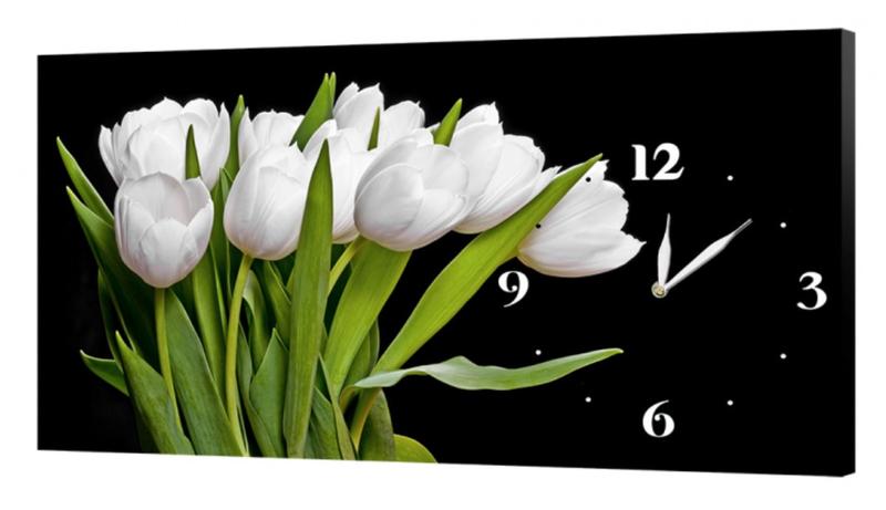 Настінний годинник profart на полотні 30 x 53 см білі тюльпани (c246_s)