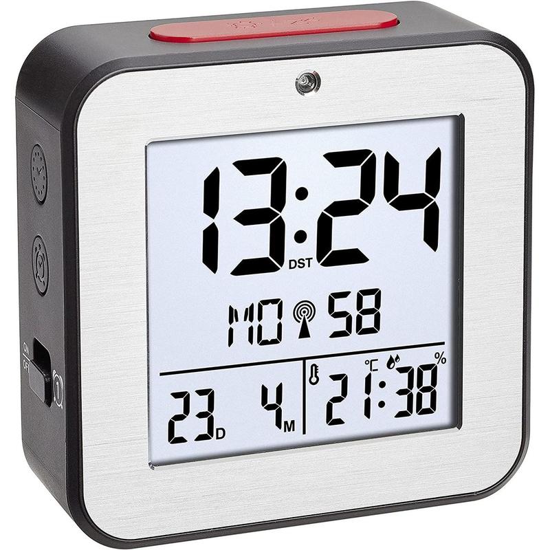 Настольные часы TFA (60254754) - это небольшие современные радиоуправляемые часы с функцией будильника и высококачественной алюминиевой передней панелью. Они впечатляют простотой использования, точным временем, возможностью мониторинга данных (день недели, дата, температура и влажность в помещении), а также имеют качественный и легко читаемый дисплей. Подсветка активируется нажатием кнопки повтора/подсветки примерно на 8 секунд, а также может быть настроена на автоматическую активацию/деактивацию с помощью датчика освещенности. Конечно, этот будильник предлагает популярную функцию повтора для тех, кто любит полежать в теплой постели на несколько минут дольше. ФУНКЦИИ: - Два отдельных будильника - Будильник с функцией повтора - Индикация дня недели и даты - Комнатный климат с температурой и влажностью в помещении - Автоматическая подсветка с датчиком освещенности - Передняя панель из высококачественного алюминия - Высокоточные радиоуправляемые часы ХАРАКТЕРИСТИКИ: - Диапазон измерения влажности: 20...95 % - Диапазон измерения температуры: -9...+50 °C - Часы: 2 режима (радиоуправляемые или кварцевые) - Тип циферблата: Цифровой (электронный) - Будильник: С функцией повтора - Формат времени: 12/24 ч - Подсветка дисплея: Автоматическая с датчиком освещенности - Материал корпуса: Пластик, алюминий - Цвет корпуса: Чёрный - Способ установки: Настольный - Питание: Батарейки - Тип батареек: 2 x AA 1.5 В - Батарейки в комплекте: Нет - Размеры: 8.2 x 8.2 x 3.3 см - Вес: 0.11 кг КОМПЛЕКТАЦИЯ: - Будильник - Инструкция по эксплуатации ЗНАК КАЧЕСТВА TFA: - Продукция от TFA убеждает в функциональности и дизайне. QUALITY-PRODUCT by: - TFA Dostmann GmbH & Co.KG - Germany