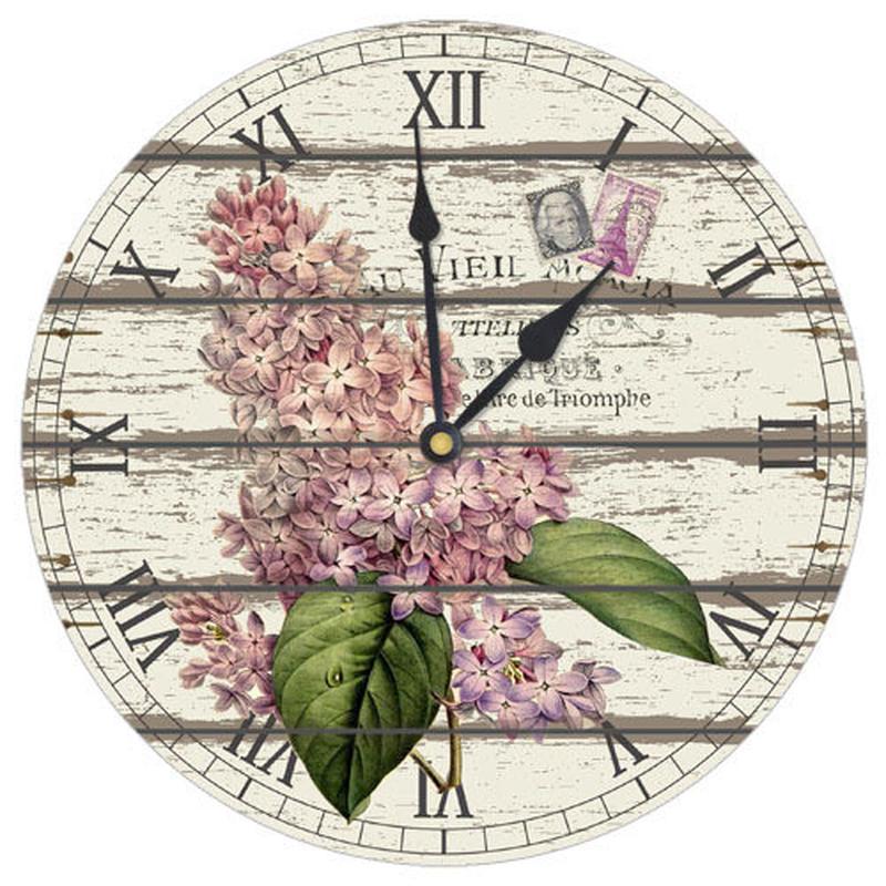 Настенные часы круглые «цветы» деревянные с принтом 36 см