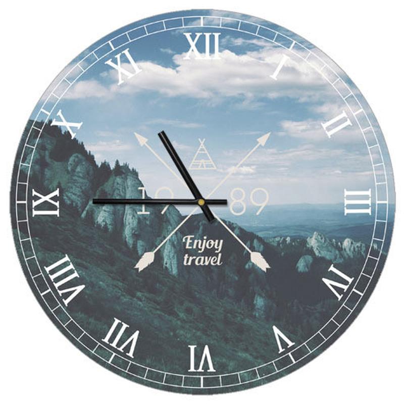 Настенные часы круглые «enjoy travel» деревянные с принтом 36 см