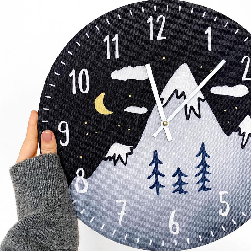 Настенные часы круглые «горы» деревянные с принтом 36 см