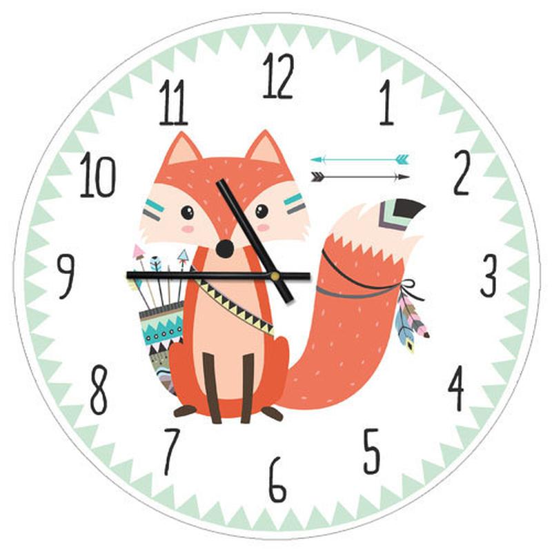 Настенные часы круглые «лисичка индеец» деревянные с принтом 36 см