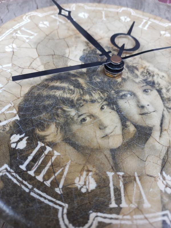 Часы настенные handmade. Диаметр 20 см Работают от батарейки. Секундную стрелку можно подрезать по длине. Катались по выставкам, поэтому б/у, есть трещинки в лаке.