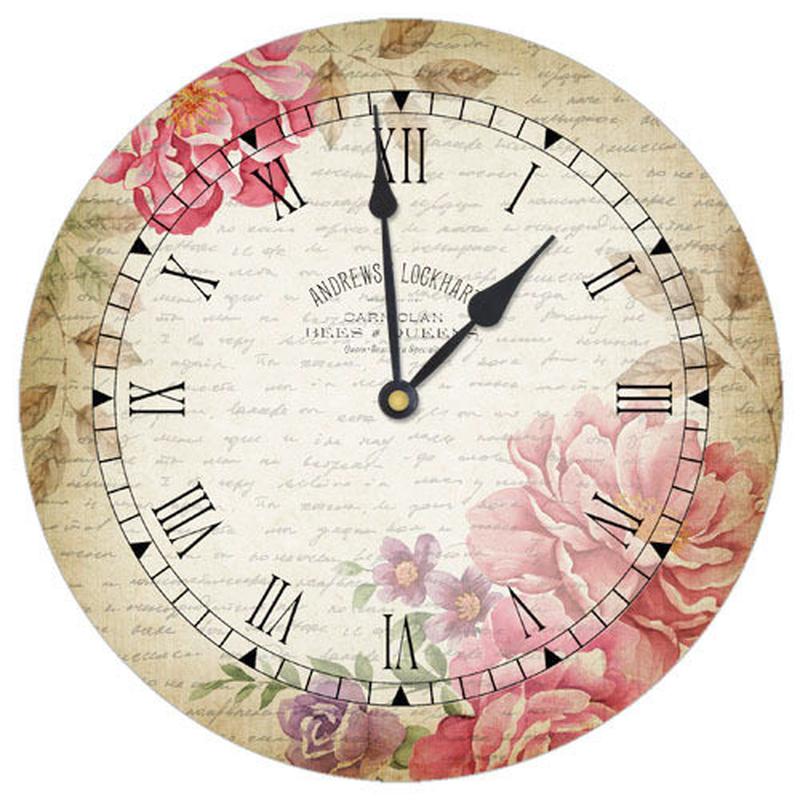 Настенные часы круглые «цветы» деревянные с принтом 36 см