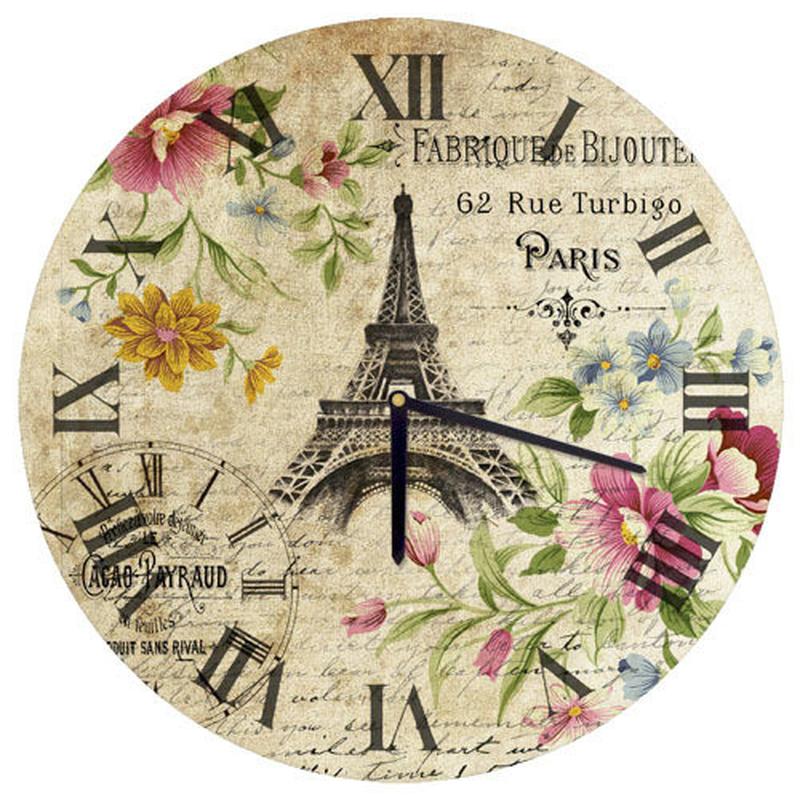 Настенные часы круглые «эйфелевая башня» деревянные с принтом 36 см