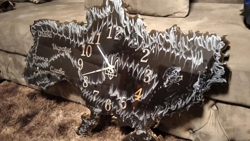 годинник з епоксидної смоли розмір 1 на 60 перша робота виконаний в чорних срібних кольорах ціна така хоч за матеріал поверну кошти