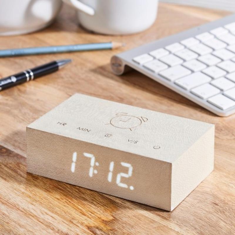 Нова колекція годинників Flip від Gingko порадує вас мінімалістичним дизайном знатурального дерева. Щоб налаштувати годинник - торкніться тонких кнопок з лазерним гравіюванням. Гаджет оснащений технологією світлодіодного дисплея, що активується простим клацанням пальців. Після клацання, загоряється дисплей, на якому відображається поточний час. Також можна їх активувати легким постукуванням по тумбочці, на якій стоїть пристрій. /p> • Верхнє покриття виконане з натурального клена • Внутрішній каркас світильника виготовлений з алюмінію Функціональність: • Будильник з повторенням • Відображають час на екрані • Світлодіодний екран чутливий до дотику та звуку. • 12/24 годинний формат годинника • Європейський або американський формат дати • Вимикаються від повороту • Можливість показувати час постійно Характеристики: • Вбудований акумулятор на 2000 мач • Від одного заряду працюють до шести місяців • Час зарядки: 3-4 години (годинник може бути підключений постійно до мережі) • Вбудована пам'ять включена для збереження налаштувань користувача Бренд Gingko славиться тим що основна увага приділяється красивому дизайну і новітнім технологіям, при цьому в основі лежить екологічність. Мета - створювати сучасні, прості та функціональні продукти. Gingko створений, щоб служити довго, а мінімалістичні стилі створені, щоб витримувати всі останні тенденції у світі дизайну та технологій. Слід звернути увагу, що оригінальні продукти Gingko виготовляються з натуральних матеріалів, таких як бамбук та інші екологічно чисті породи дерева.