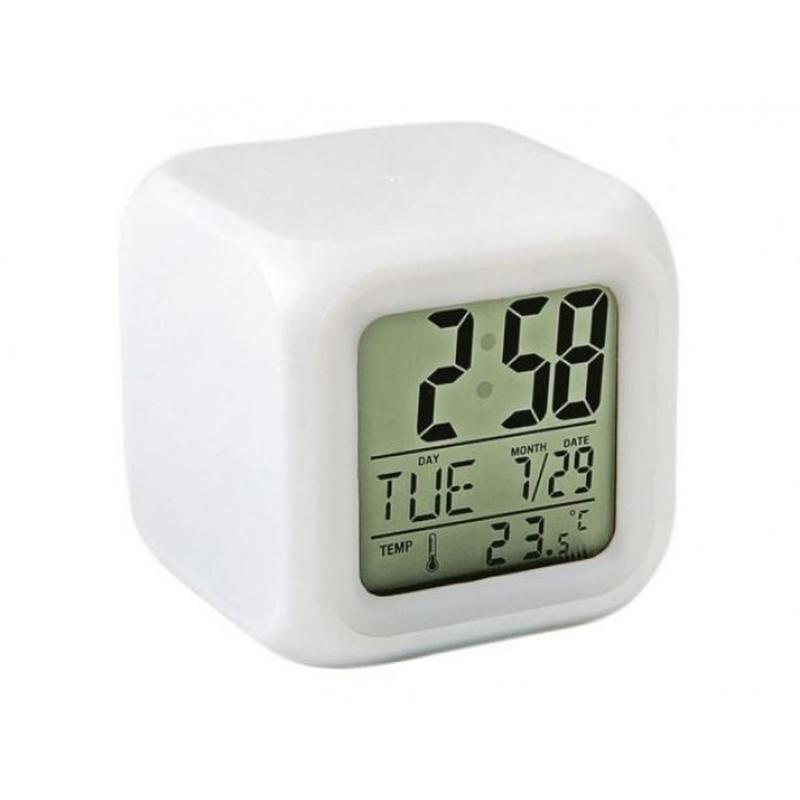 Часы хамелеон с термометром будильник ночник Всем давно известен популярный будильник "Хамелеон", который завоевал симпатии большого количества людей. В чём же секрет его популярности? С виду ни чем не привлекательный будильник белого цвета с большим экраном, размеры его не велики: всего 8 см. во все стороны. Но есть огромное количество плюсов. В будильнике помимо функции часов и будильника, есть функция даты, температуры воздуха (в Цельсиях и фаренгейтах), настройки года, а также умопомрачительная подсветка. Подсветка переливается всеми цветами радуги, при переходе минуя тысячи оттенков. Подсветка начинает работать от прикосновения руки. Например, Вы не любите когда ночью что - то мигает, но вдруг Вы проснулись ночью и Вам нужно увидеть время или попить воды, и тут достаточно только дотронуться рукой до будильника и комната озарится приятным цветом, а Вы легко увидите точное время. Этот будильник можно подарить к любому празднику, это прекрасный подарок на Новый Год, подарок на день рождение да и просто оригинальный подарок. Также нет ограничений, относительно получателя : подарок маме, подарок жене, подарок коллеге, подарок боссу, подарок ребёнку, подарок мужу - да кому-угодно. Характеристики: Постоянно плавно изменяющийся цвет часов 7 основных цветов Отображают время, дату и температуру 24 часовое отображение времени Отображение температуры в C (Цельсий) и F (фаренгейт) Будильник (8 мелодий на выбор) Размеры часов: 8x8x8см Размеры экрана: 5.2x5.2см Для подсветки используют 3 ААА батарейки (не идут в комплекте)