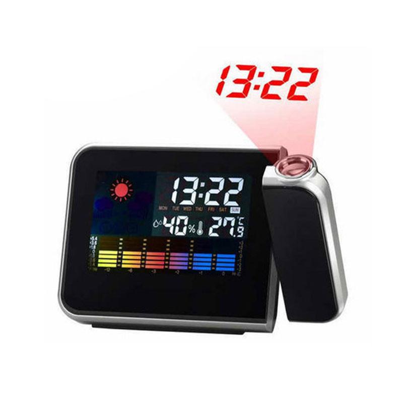 Про точність прогнозів погоди, які щодня бачимо на екранах телевізора, можна розповідати анекдоти. Я думаю кожен з нас, хоча б кілька разів у житті, побачивши прогноз про сонячний та спекотний день, потрапляв під дощ. Але тепер у вас є можливість придбати власну метеостанцію з годинником, за допомогою якої ви завжди будете в курсі змін погоди та зможете щодня одягатися так, як потрібно. Проекційні годинник поєднує в собі функції годинника, календаря, будильника, метеостанції, які моментально вимірять вологість повітря і температуру в приміщенні. Крім того, цей прилад оснащений функцією проектування часу на стіни, стелю або будь-яку іншу рівну поверхню, а вся інформація виводиться на зручний, кольоровий дисплей. Дисплей оснащений функцією підсвічування, тому ви зможете побачити відображені на ньому цифри навіть уночі. Вдале дизайнерське виконання дозволяє пристрою чудово вписуватися в будь-який дизайн приміщення. Метеостанція з годинником відмінно виглядатиме на вашому столику, на робочому столі, на будь-якій полиці. Пристрій працює від звичайних батарейок типу ААА і не потребує підключення до електричної мережі. Особливості годинника: Матеріал корпусу: пластик. Вбудована метеостанція з прогнозом опадів. Функція вимірювання вологості (10% RH – 99% відносної вологості). Індикатор температури (температурний діапазон: від 0 С до 50 С). Календар (2001-2099 рік). Живлення: дві батарейки типу ААА (у комплект не входять) або блок живлення 4,5 (у комплект не входить). Постійна робота проектора можлива при підключенні адаптера.