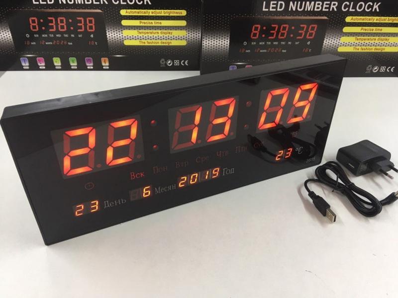 Электронные настенные часы VST-3615 RED/ 15cm*26cm*3cm Электронные настенные часы VST-3615 RED, имеют большое табло со светящимися красным цветом цифрами, которые подсвечиваются при помощи светодиодных лампочек. На табло помимо времени есть отображение температуры воздуха, и даты, возможен выбор формата цифрового изображения (12 или 24 часа), так - же есть функция будильник со звуковым сигналом, и выбором мелодий. На тыльной стороне часов находятся четыре кнопки, A/B/C/D с помощью которых, выставляются цифровые показатели на светодиодных часах 3615 (часы, минуты, дата, будильник, температура), а так - же отверстие динамика, и отверстия для креплений настенных светодиодных часов LED 3615, к стене. Характеристики: - Тип часов: Настенные; - Тип механизма: Электронный; - Индикация времени: Светодиодная; - Материал корпуса: Пластик; - Размер: 36×15×2,5 см; - Длина кабеля: 1 м.