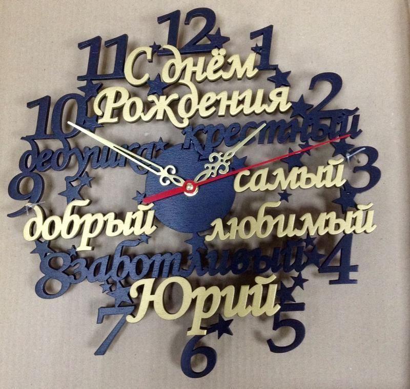 Часы из дерева. 40 см , отменный подарок на день Рождения. Можно изготовить к любому празднику, слова и цвет могут быть ваши. Деревянные часы несут в себе энергию природы. Макет предоставляю с вашими словами,все обговариваем. Дополнительные характеристики: Цвет : Черный Материал : Фанера Форма: Круглые Товар под заказ