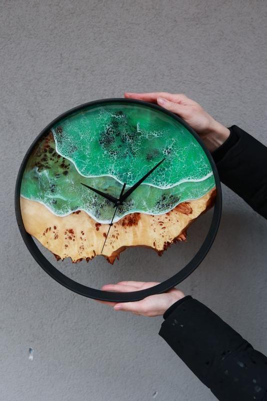 Гармонійне поєднання дерева та епоксидної смоли - завжди яскравий акцент до інтер'єру Вашого будинку. Діаметр годинника: 35 см. Матеріал: натуральний горіх. Дополнительные характеристики: Цвет : Зеленый Цвет : Черный Материал : Дерево Форма: Круглые