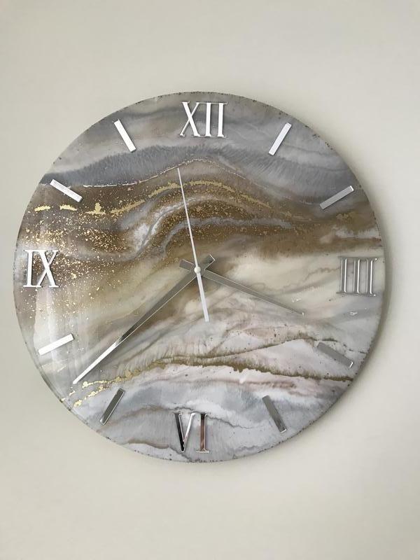 Настенные часы из эпоксидной смолы( имитация мрамора) Зеркальный декор. Бесшумный механизм. Диаметр 40 см Дополнительные характеристики: Цвет : Белый Цвет : Серый Материал : Дерево Форма: Круглые