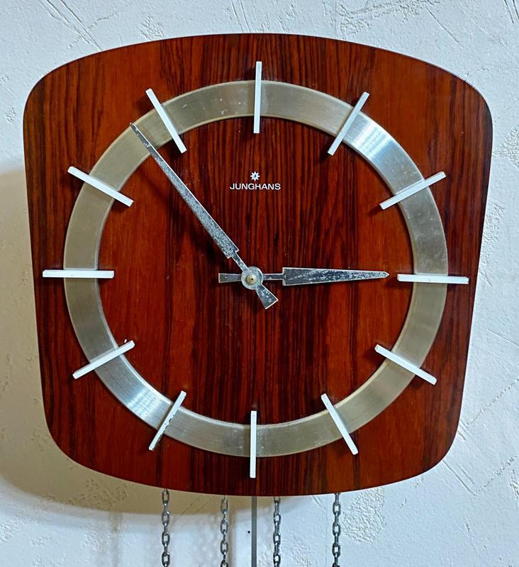 Виробник: Інший виробник Вид годинника: Настінні Тип механізма: Механічні Форма: Прямокутні Производитель: Junghans Период изготовления: Середина 20 века Материал: дуб, фанера, латунь. Размер часов: высота 30 см, ширина 30 см, глубина 10 см. Состояние: полностью рабочие, без реставрационных работ, следы использования. Очень мелодичный бой каждый час и пол часа.