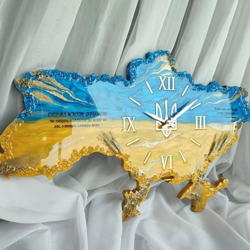 Часы в виде карты Украины с флагом Эти часы станут отличным выбором для тех, кто ценит оригинальность и хочет добавить в свое пространство элемент украинской культуры в Не только отслеживайте время, но и получите стильное дополнение к любому интерьеру