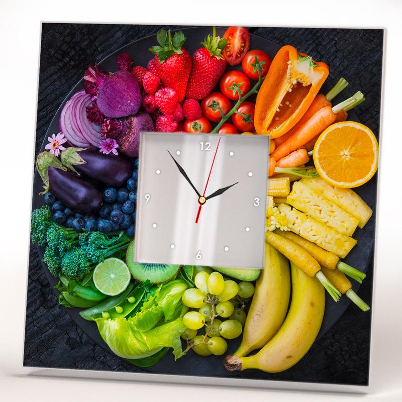Часы "разноцветные овощи и фрукты. натюрморт" декор интерьера для кухни, кафе, бара, ресто...