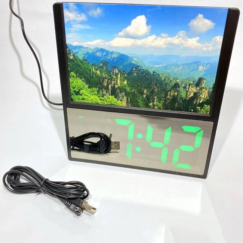 Электронные проводные настольные цифровые часы ds-6608 с фоторамкой, зелёная подсветка. цв...