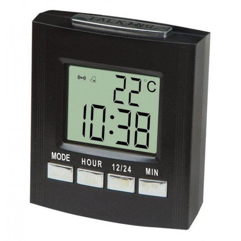 Цифровое устройство VST-7027C представляет собой электронные часы, настольные, с функцией голосового оповещения, будильником и термометром. Прибор компактный, изготовлен из высококачественного пластика, имеет жидкокристаллический дисплей с большими четкими цифрами. Настольные часы оснащены встроенным температурным датчиком, который измеряет температуру воздуха в помещении. Шаг измерения температуры - 1 градус. Система единиц - Цельсий. Температура отображается на цифровом дисплее одновременно с индикацией времени. Это очень удобно, так как нет необходимости нажимать какие-либо кнопки, чтобы узнать климат в помещении. Часы имеют два режима отсчета времени: 12 и 24 часа, эта настройка осуществляется вручную пользователем. Есть функция будильника с повтором сигнала. Также вы можете выбрать себе сигнал из предложенного ассортимента, чтобы Ваш утренний подъем был максимально комфортным. Функция голосового оповещения - изюминка этих часов. Вы можете сами настроить почасовое оповещение о времени голосом или сигналом, или прослушать в реальном времени данные с дисплея, нажав на соответствующую кнопку. Часы с голосовой функцией, или, как их еще называют, говорящие часы - это удобно и оригинально, отличный вариант как для слабовидящих людей, так и для всех остальных. Такой оригинальный подарок порадует любого. На дисплее есть индикация включения будильника, а также функции повторного сигнала. Это поможет Вам сориентироваться, включили ли Вы будильник, или только собирались это сделать. Настройка часов и всех остальных функций прибора осуществляется кнопками на лицевой части корпуса часов, под дисплеем. Часы выполнены с классическом строгом дизайне, который одинаково хорошо подходит как для уютной домашней обстановки, так и для деловой. Вы можете поставить часы и на прикроватную тумбочку, или на полку в своей комнате, а можете отнести их на работу и найти им место на Вашем рабочем столе. Питание: 2 х АА(в комплект не входят) Размеры: 73 х 77 х 26 мм