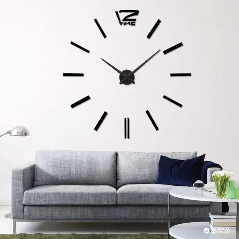 Цифри мають самоклеючу поверхню для кріплення на стіні. Корпус годинника кріпиться шляхом навішування на елемент кріплення (присутня в наборі). Кольори: чорний Діаметр - від 60 до 120 см Тип батареї: 1.5 В АА - 1шт. (Не входить до комплекту) У комплект входить: годинниковий механізм стрілки: годинна та хвилинна цифри (акрил+піна eva) шаблон для наклейки на стіні