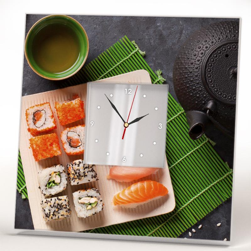 Часы "суши и чай матча" декор подарок с изображением японской еды, украшение декор кухни,...
