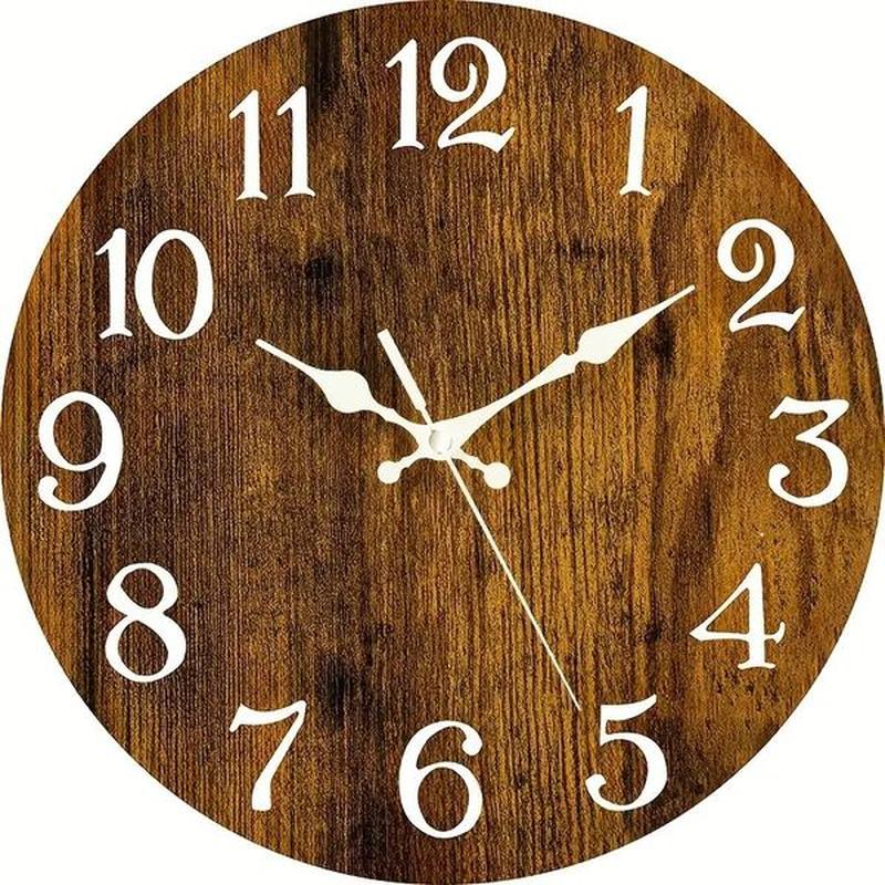 Часы настенные круглой формы в стиле винтаж с деревянным зернистым дизайном, рустик декор для дома, подарок для гостиной, спальни, кухни, работают от батарейки типа АА (батарейка не входит в комплект), D25 см Под заказ 10-18 дней
