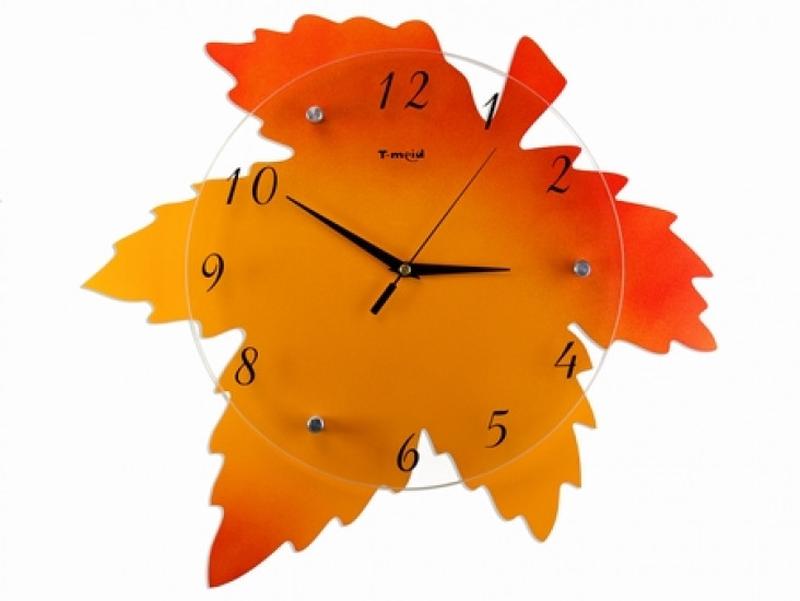 Настенные Часы Кленовый Листочек - Размер: 42х40х5 см - Материал: Стекло/Дерево - Цвет: Оранжевые