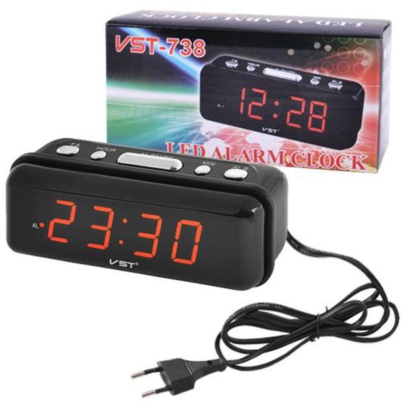 Часы настольные vst-738-1 черный с красными цифрами + будильник и подсветка, оригинальные...