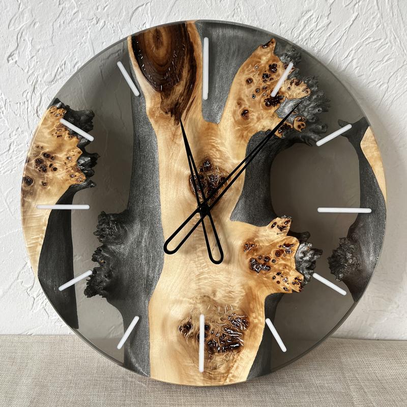 Часы настенные из среза дерева и эпоксидной смолы круглые origin №12 35x35 см