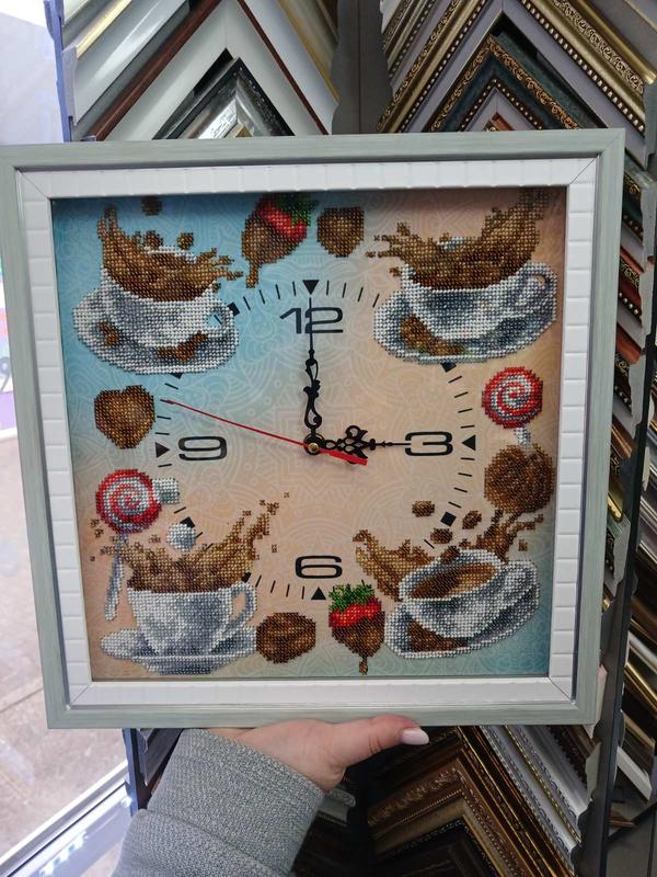 Часы вышит бисером. Оформлен в багет под стекло. Размер 34*34 см