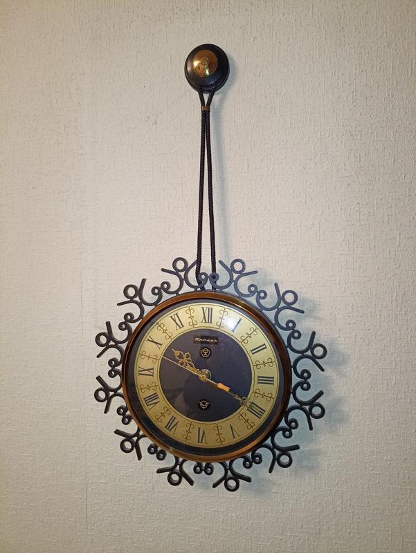 Настінний годинник, електронно-механічний Стан: ідеальний (робочий) Габарити, см: діаметр – 29; товщина – 3,5 Вага: 600 г Торгова марка: Орловське ВО "Янтар" (м.Орел) Країна-виробник: СРСР