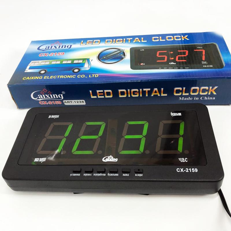 Часы электронные caixing cx 2159 12в 220в настольные настенные будильник черный корпус зел...