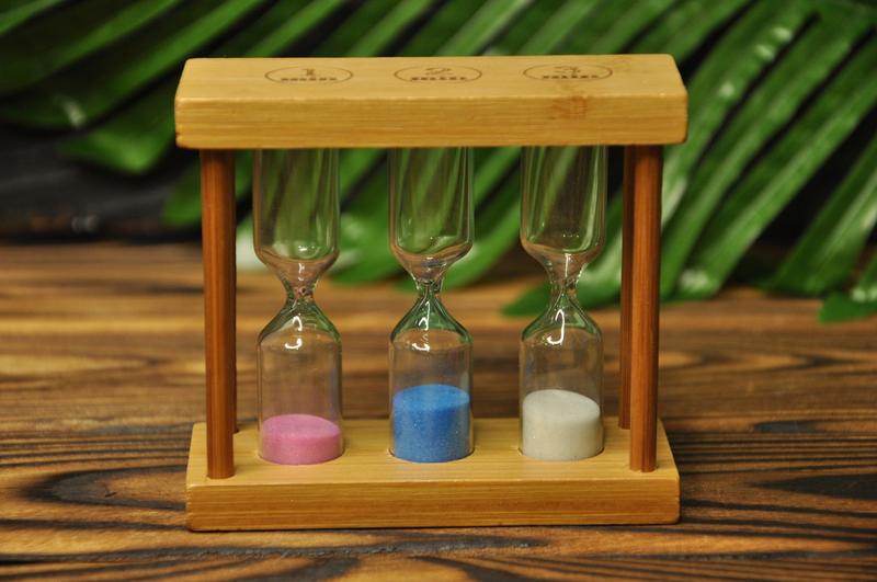 Песочные часы 3в1 на 1,2,3 минуты Размер: 10 х 9 х 4 см Погрешность измерение +- 5сек материал - дерево/стекло