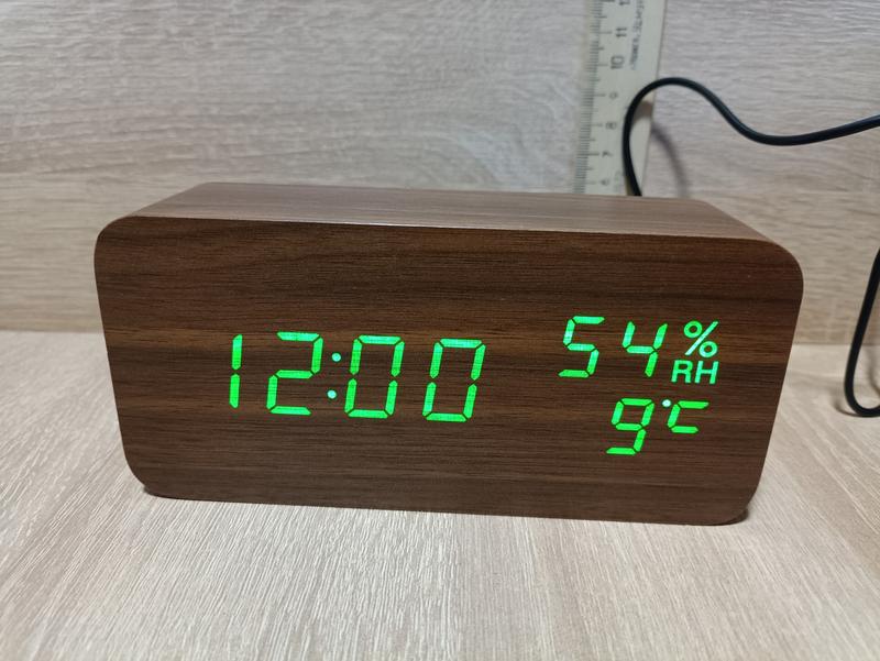Настільний електронний годинник з датою, датчиком температури від мережі з підсвічуванням