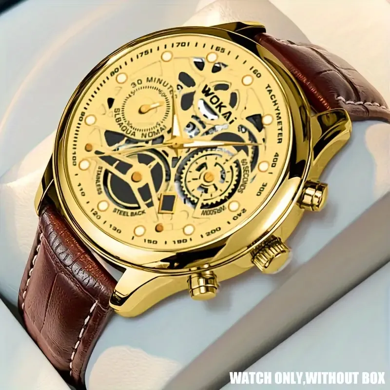 Мужские кварцевые часы WOKAi, в виде хронографа. Идеальный выбор для подарков на Новогодние праздники. Более подробно Материал ремешка: искусственная кожа Материал корпуса часов: сплав Форма циферблата: Круглий Уровень водонепроницаемости: 10 м Стиль: Хронограф Механизм: Кварцевые часы Режим вождения: электронные Режим питания: Работает от батареи Рабочее напряжение: ≤36В Свойства батареи: Кнопочная батарея (диаметр < 20 мм)
