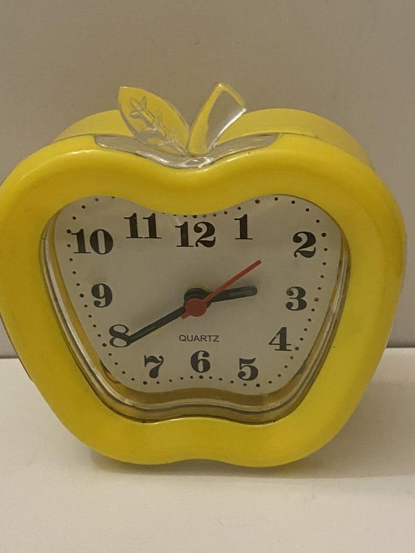 Будильник настольный " яблоко " ( желтый ) размер 10 х 9,5 см. Работа на одной батарейке АА ( продается без батарейки )