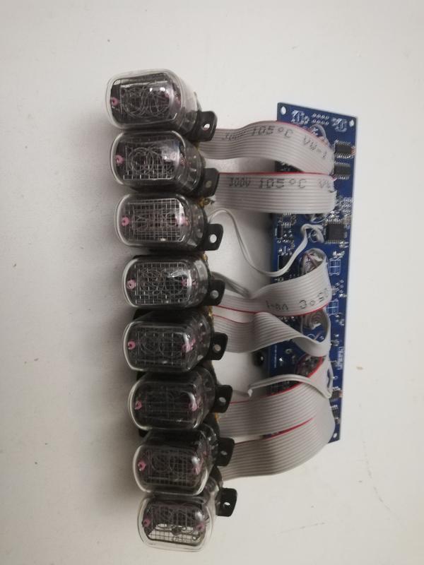 При включенні горить 1 лампа (на фото). Работают ли лампы или нет неизвестно. DIY Набор для Nixie Время с 8 Лампами IN-18 (STM32F100C8, NRF24, GPS) – Ретро-Электроника от NixieClock. Поклонные энтузиасты ретро-технологий! Представляем эксклюзивный DIY-набор для сборки уникальных Nixie-часов с 8 большими лампами IN-18 – символом советской электроники 70-х. Этот комплект на базе микроконтроллера STM32F100C8 сочетает классический дизайн с современными функциями: GPS-синхронизацией для атомарной точности времени, NRF24-модулем для беспроводного управления и RGB-подсветкой для атмосферного освещения. Идеально для коллекционеров, мастеров и любителей DIY-проектов!Этот набор – полный комплект для самостоятельной сборки: плата со всеми компонентами, разъемные сокеты для ламп (легкая замена), жгут кабелей и инструкция. Сборка занимает 2-4 часа, не требует сложного оборудования. После запуска часы автоматически тестируют лампы (POST: последовательное отображение цифр 0-9, мигание LED и стартовая мелодия).Цветные характеристики:Дисплей: 8 ламп IN-18 (входят в комплект) с точками (dots) для отображения времени (HH:MM:SS), даты, температуры. Большие лампы создают эффектный "огнутый" эффект. Точность времени: Встроенный RTC DS3231 с резервной батарейкой (CR2032, не входит) + GPS модуль (NMEA протокол, 1PPS для синхронизации <1 мс). Автоматическая коррекция при UTC, поддержка часовых зон. Беспроводное управление: NRF24 модуль (2.4 ГГц) для удаленной настройки через пульт или смартфон (дополнительный код доступен на GitHub). Подсветка и эффекты: RGB LED под лампами (24-битный цвет, 16 млн оттенков) с PWM регулировкой. Антиотружения катодов (cathode poisoning prevention) через "слот-машину" (выпадительные цифры для равномерного износа). Дополнительные функции: Сенсор температуры DS18B20 (внешний, опционально). Бузер для мелодий, будильника и стартовых звуков (полифония). USB-интерфейс для обновления прошивки (STM32CubeIDE или Arduino-совместимость). Кнопки на плате для меню: настройка времени, яркости, PPM-калибровка (±10 с/день). Технические параметры:Микроконтроллер: STM32F100C8T6 (ARM Cortex-M3, 24 МГц). Высоковольтный драйвер: Встроенный DC-DC конвертер (170-220 В, на MC34063) для безопасного питания ламп. Питание: 12 В DC (1-2 А, разъем 5.5x2.1 мм, центр +). Потребление ~800 мА. Размеры: Основная плата ~200x60 мм, панель ламп ~150x50 мм. Совместимость: Лампы IN-18, IN-8-2 или Z566 (сокеты DPBS-25F). Комплектация:Головая плата с MCU, HV-модулем, RTC и драйверами. Панель для 8 ламп с сокетами и жгутами (FPC кабели). 8 ламп IN-18 (оригинальные советские, с проверкой). Модули: GPS (NEO-6M), NRF24L01, RGB-лента. Компоненты: Резисторы, конденсаторы, транзисторы, кнопки, бузер. Преимущества:Ретро-стиль с современностью: Классические Nixie лампы + GPS для точности, как в атомных часах. Легкость сборки: Готовая плата с маркировкой, сокеты для ламп – без пайки стеклянных элементов. Расширяемость: Открытый код, совместимость с Arduino/STM32 – добавьте IoT, Wi-Fi или кастомные эффекты. Долговечность: Защита от переполяризмовки, антиотравление ламп – будут служить годами.