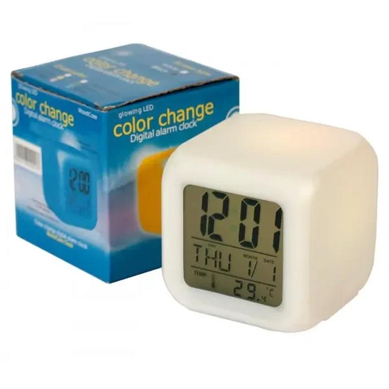 Часы хамелеон CX508 кубик R190464 Настольные часы Удобство. Эти уникальные часы являются максимально удобным вариантом настольного будильника, ведь их видно в темноте благодаря подсветке, поэтому вы сможете воспользоваться ими в любое время суток. Комфорт. Иметь дома часы - это очень важно, поскольку с ними вы сможете контролировать себя и успешно справляться со своими делами вовремя, не забывая о тайм-менеджменте. Универсальность. Тот факт, что эти часы выполнены в классическом стиле, делает их универсальными и подходящими под любой интерьер абсолютно любого цвета. Практичность. Эти часы являются не только отличным демонстрантом времени, но также смогут послужить неплохим ночником в темное время суток, а также отличным будильником, который разбудит вас с утра. Светящиеся часы Любите постоянно следить за временем? Боитесь упустить драгоценную секунду? В таком случае вам нужно иметь часы везде, чтобы была возможность в любой момент удостовериться в том, что вы не теряете ни минуты. Отлично, если эти часы будут иметь функцию будильника, чтобы оповещать вас о необходимости проснуться. Все это есть в нашем маленьком, но очень полезном друге. Советуем вам присмотреться к новым часам-кубику, они имеют достаточно широкий функционал, который поможет вам всегда быть на чеку и контролировать время. Наличии подсветки сделает из этих часов отличный ночник, который вы сможете использовать в темное время суток. Характеристики: - Состояние: Новое - Тип механизма: Электорнный - Материал корпуса: Пластик - Цвет корпуса: Белый - Страна регистрации бренда: Украина - - Упаковка: Коробка - Страна-производитель: Китай - Тип циферблата: Цифровой - Функции: Ночник (при нажатии меняют цвет), Часы, Будильник, Календарь, Термометр Комплектация: - Часы CX508 кубик R190464