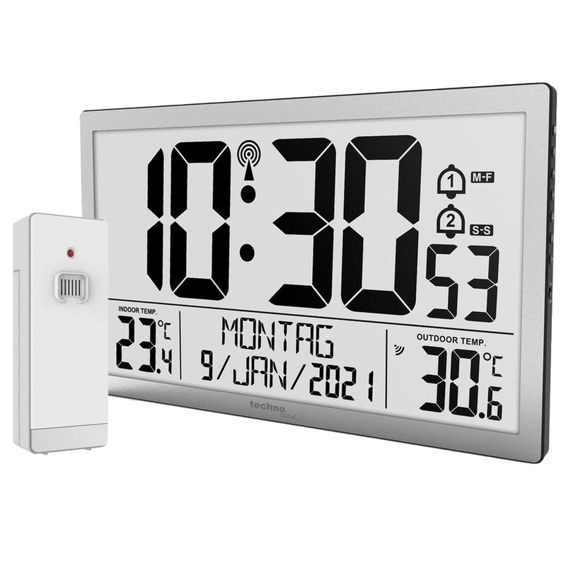 Technoline WS8113 Silver отличается большим контрастним дисплеем з четкими цифрами и наличием датчика внешней температуры. Его можно рассматривать как настенные часы для офисов, залов, общественных приемных, или в качестве настольных часов для домашней гостиной. Дополнительно часы выполняют функцию будильника, календаря и термометра внутренней и внешней температуры. То есть перед выходом из дома вы всегда сможете оценить погодные условия и соответственно надеться, а 2 программируемых будильника напомнят о важном событии или разбудут утром. Выдвижной упор на обратной стороне корпуса придает часам необходимую устойчивость на горизонтальной поверхности, а для крепления часов вертикально предусмотрено три специальных отверстия. Если часы Technoline WS8113 находятся в зоне приема сигнала точного времени – он автоматически корректирует и всегда точно показывает время. Функции: Годинник: - Механизм: электронный, цифровой - Функция радиоконтроля времени DCF77: автоматическая синхронизация времени по радиосигналу DCF77 из Майнлингена (Германия). Сигнал формируется на основе данных, полученных от трех атомных часов, и погрешность составляет менее 1 секунды в 1 миллион лет. Передатчик сигнала точного времени DCF77 осуществляет передачу данных в радиусе 1900-2100 км, и охватывает большую часть территории Украины. Обратите внимание, что восточная часть Украины только частично входит в радиус действия сигнала и прием сигнала в Днепропетровской, Запорожской, Харьковской, Донецкой и Луганской области может быть нестабильным. В таком случае необходимо отключить прием радиосигнала и воспользоваться ручной настройкой. - Возможность отключения сигнала радиоконтроля и выбор ручной установки времени и даты - Формат времени: 12/24 г - Выбор часового пояса (поправка на время) -2/+2 часа - Точность хода часов: 1 сек в 1 млн лет (При приеме сигнала DCF77), +/- 30 сек/мес (точность электронного механизма) - Два будильника с функцией повтора «snooze», которую можно настраивать (повтор в диапазоне от 5 до 60 мин) Температура в помещении: - Единицы измерения: oС/°F - Диапазон измерения: от -9.9°C до +50°C (от +14°F до +122°F) - Дискретность измерения: 0.1°C - Точность измерения: +/- 1C° Внешняя температура: - Единицы измерения: oС/°F - Диапазон измерения: от -40°C до +70°C (от -40°F до +158°F) - Дискретность измерения: 0.1°C - Точность измерения: +/- 1C° Календар: - Отображение: даты / месяца / дня недели на 7-ми языках: (Нимецкая, Английская, Французская, Итальянская, Голландская, Испанский, Данская) Передача данных от внешнего датчика температуры: - Частота передачи данных: 433.92 MHz - Дальность передачи данных: до 60 м. прямой видимости Характеристики и комплектация: Особенности конструкции: - Дисплей: монохромний; - Размеры циферблата: 340x190 мм; - Индикатор заряда батареи - Материал корпуса: пластик - Установка: на стене или на столе - Цвет корпуса: Silver (серебристый) Питание: - Годинник: батарейки AA (LR06) 1.5V х 4 шт - Датчик: батарейки AА (LR06) 1.5V х 2 шт Комплектация: - Часы - Беспроводной датчик внешней температуры TX205 - Батарейки AA (R06) 1.5V х 6 шт - Инструкция на украинском языке Размеры и вес: - Размеры без упаковки, мм: 373x228x30 - Размеры в упаковке, мм: 390х250х50 - Вес без упаковки, кг: 0.8 - Вес в упаковке, кг: 1.03 Срок гарантии: 1 год Производитель: Technoline (Germany)